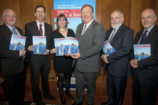 Michael Doherty (Peace and Reconciliation Group), Allan Leonard (Northern Ireland Foundation), Angela Askin (Derry City Council), Pat Ramsey MLA (Foyle), Francie Molloy MLA (Deputy Speaker, Northern Ireland Assembly), Earl Storey (Topstorey Communications) at launch of Forum for Cities in Transition 2012 conference report. Event at Parliament Buildings, Belfast, Northern Ireland. Copyright (c) Kevin Cooper Photoline http://www.kevincooperphotoline.com